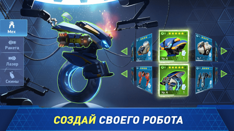 - большой выбор улучшаемых боевых роботов;
