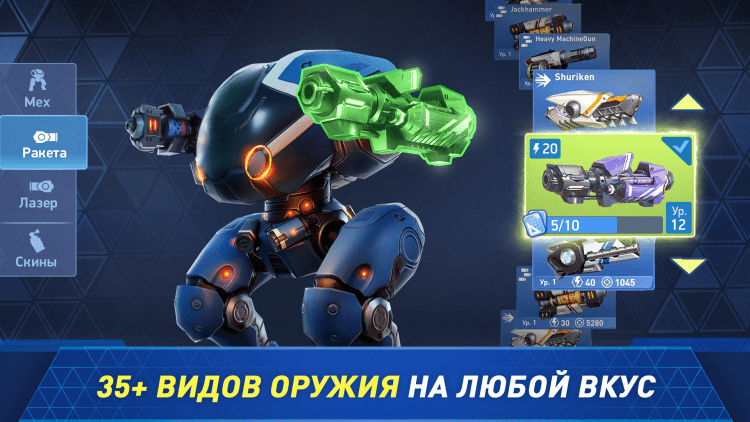 Любите игры с боевыми роботами? Тогда скачайте последнюю версию этого приложения на свой мобильный телефон или планшет. Здесь, вас ожидают быстрые матчи 5 на 5 игроков, с использованием разнообразных мехов. Игра предлагает большой выбор разнообразного оружия: от пулеметов до ракетниц, а также позволяет улучшать характеристики боевых машин. Для этого, вам потребуется участвовать в сражениях и зарабатывать специальные очки. А приятным дополнением станет наличие уникальных навыков у каждого меха. Используйте их с умом, чтобы одолеть самых опасных противников.