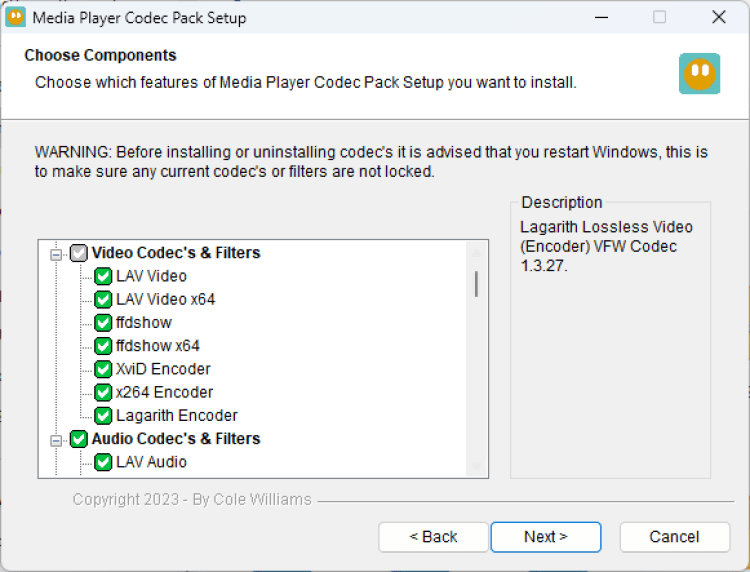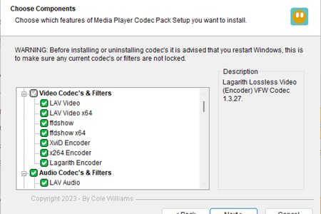 - Lagarith Video (Encoder) Codec v1.3.27 x86 & x64;