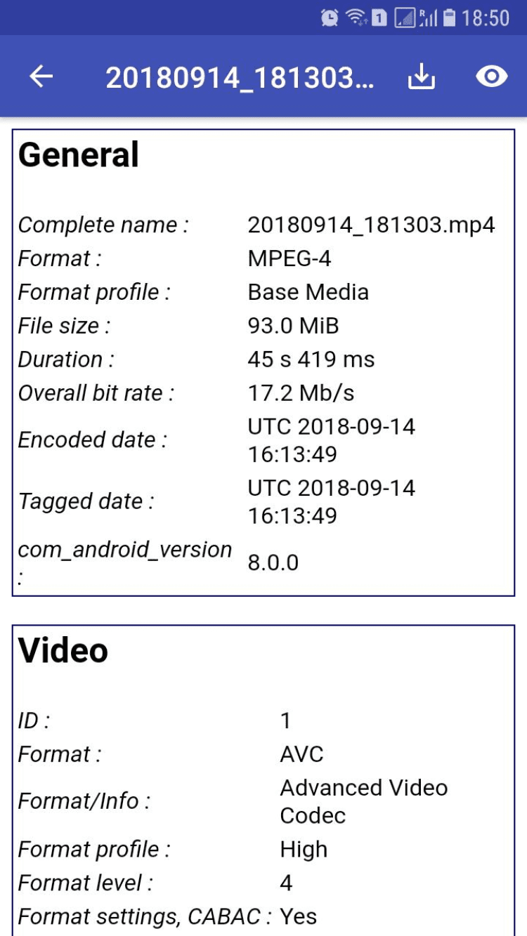 MediaInfo — это версия кроссплатформенного приложения для анализа аудио и видео файлов, предназначенная для мобильных телефонов под управлением Android.