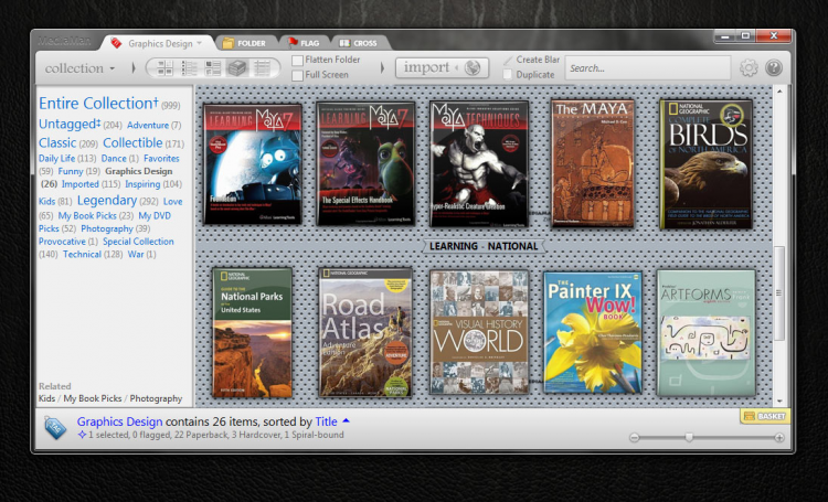 MediaMan Программа для организации каталога мультимедийных файлов. Умеет работать с фильмами, музыкой, книгами, играми, DVD, CD и VHS. Всю необходимую информацию MediaMan с базы данных Amazon. При необходимости, можно распечатать список наименований, содержащихся в каталоге.