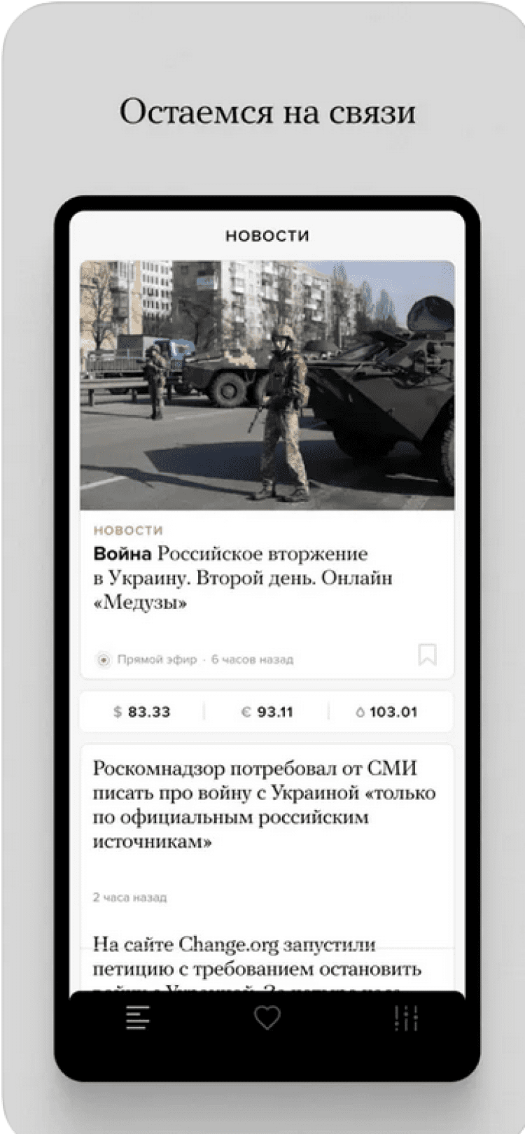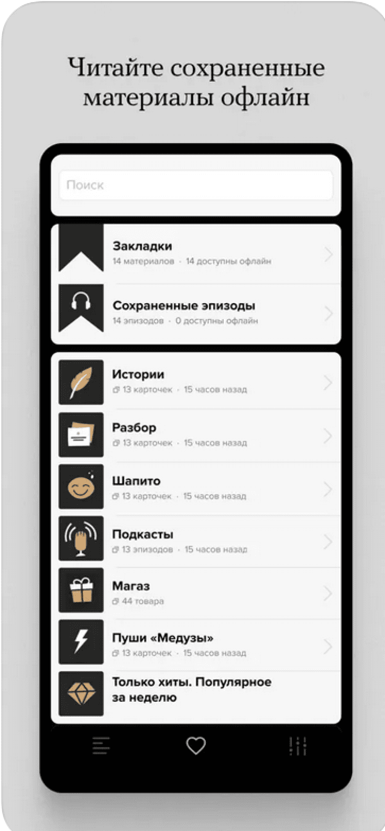 Meduza — эта программа позволит вам читать самые важные и свежие новости на экране своего мобильного устройства. Программа Meduza содержит пять экранов. На первом вы сможете прочесть новости о происходящем на данный момент, на втором - российские и мировые сюжеты, за которыми следит редакция, на третьем - читать расследование сложных историй, обсуждение новых законов и разъяснение международных договоров, на четвертом - статьи специальных корреспондентов, а на пятом - просматривать материалы о развлекательных учреждениях.