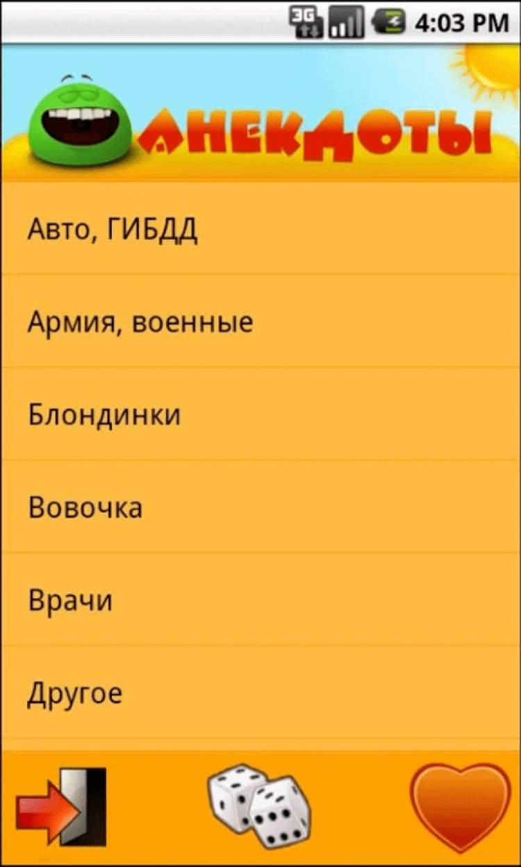 Прогармма для вашего мобильного устройства на базе Android, которая позволяет вам читать самые лучшие русские смешные анекдоты.