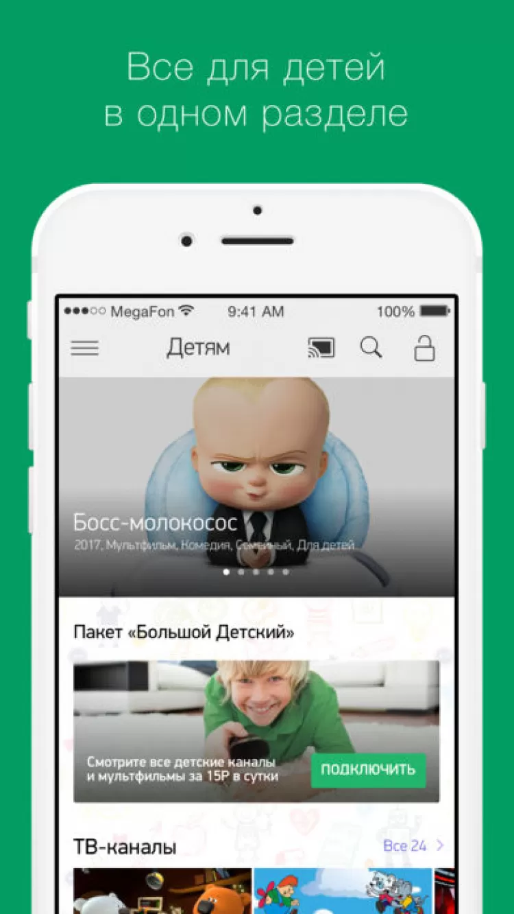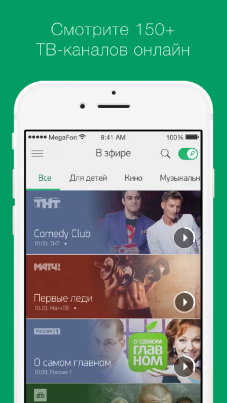 Любите смотреть фильмы и сериалы, но не имеете возможности наслаждаться ими с телевизора или компьютера? Тогда скачайте МегаФонТВ для iOS.