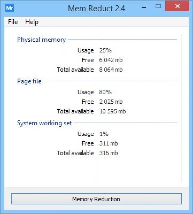 Mem Reduct может освободить примерно 25% памяти, немного увеличив производитель вашего компьютера.