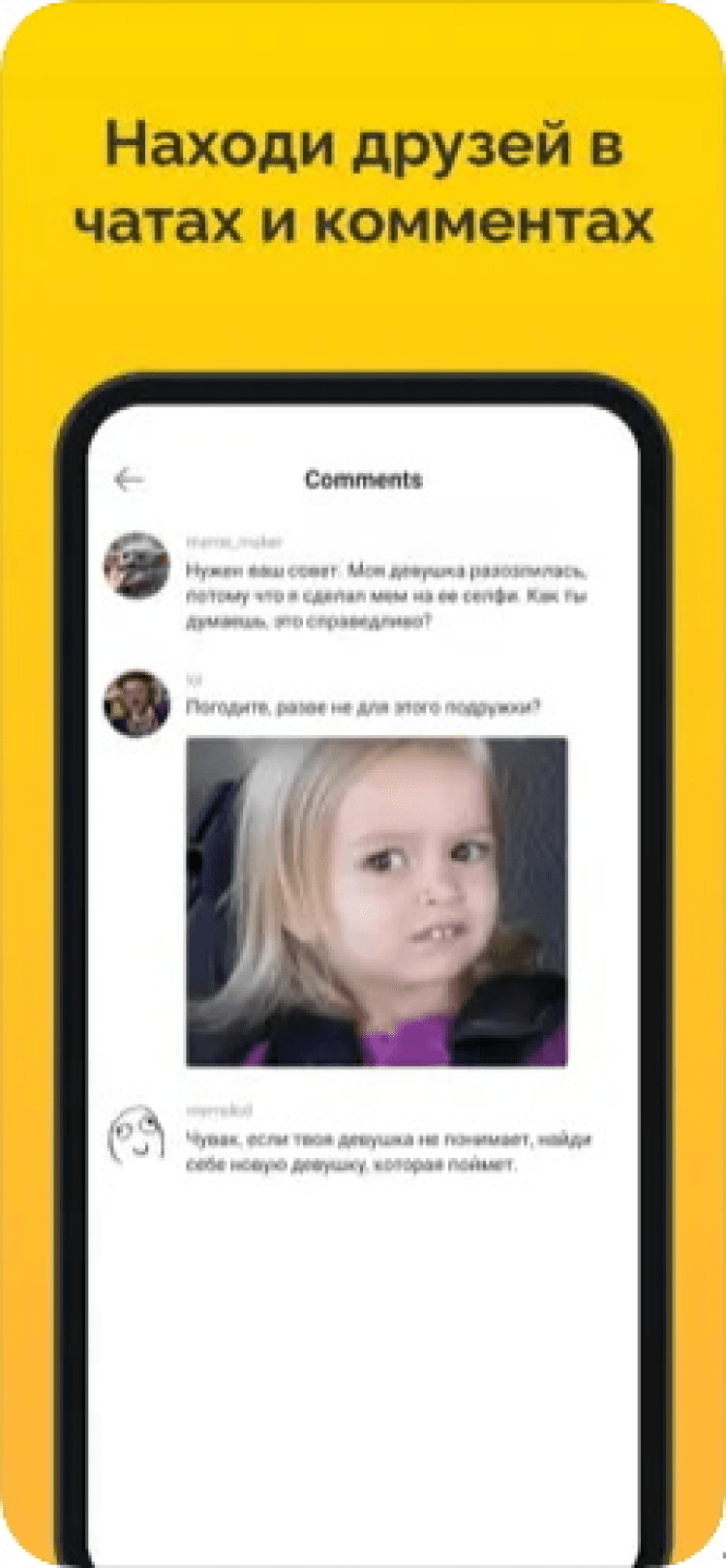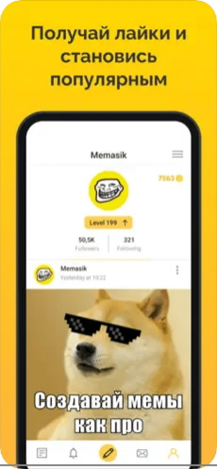 Перед вами не просто инструмент для создания мемов. В последней версии этого приложения, вы найдёте целое сообщество авторов, публикующих множество новых мемов каждый день. Вы можете наслаждаться просмотром их творений, подписываться на пользователей, а также общаться в комментариях. Кроме того, вы можете опубликовать ваши собственные мемы. Для их создания, можно использовать изображения из памяти гаджета, а затем наложить стикеры и текст. Чтобы ваши творения увидело больше людей, вы можете использовать внутреннюю валюту для продвижения в топе.