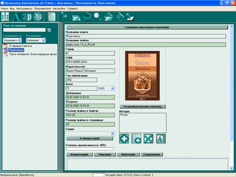 Менеджер библиотеки «Менеджер Библиотеки» - ваш помощник при создании домашней электронной библиотеки. С его помощью, каждая книга снабжается справочной информацией. Кроме того, становится доступным добавление и удаление книг, проверка книг в хранилище на наличие дубликатов, использование полнотекстового поиска, создание комментариев, возможности резервного копирования и восстановления файлов, просмотр электронных книг по жанрам, полкам (виртуальным книжным шкафам), алфавитному каталогу (автор / название), форматам файлов, в которых хранятся книги (TXT, DOC, PDF, RTF, DjVu, XML, HTML, ZIP, RAR), возможность работы с большими файлами (до 100 МБ) и т.д.