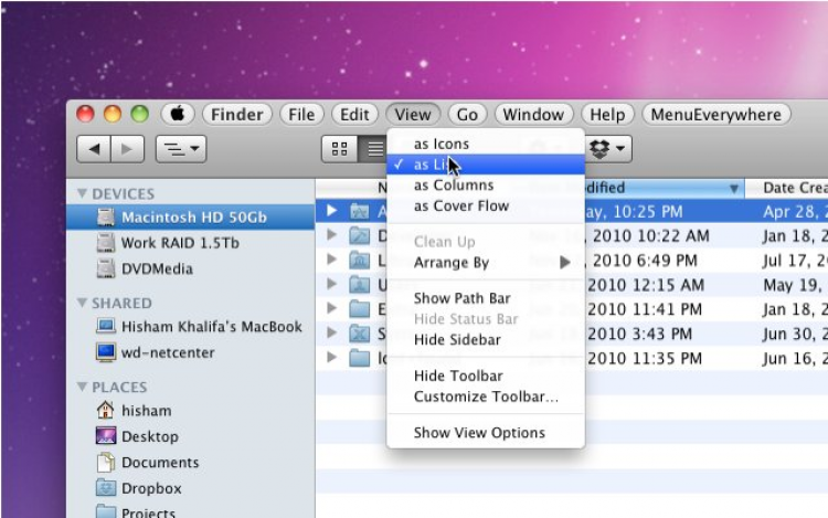 MenuEverywhere Делает строку меню доступной из любого места на рабочем столе. MenuEverywhere пригодиться обладателям больших мониторов и мультимониторных систем. Доступ к строке меню осуществляется одним из следующих методов: