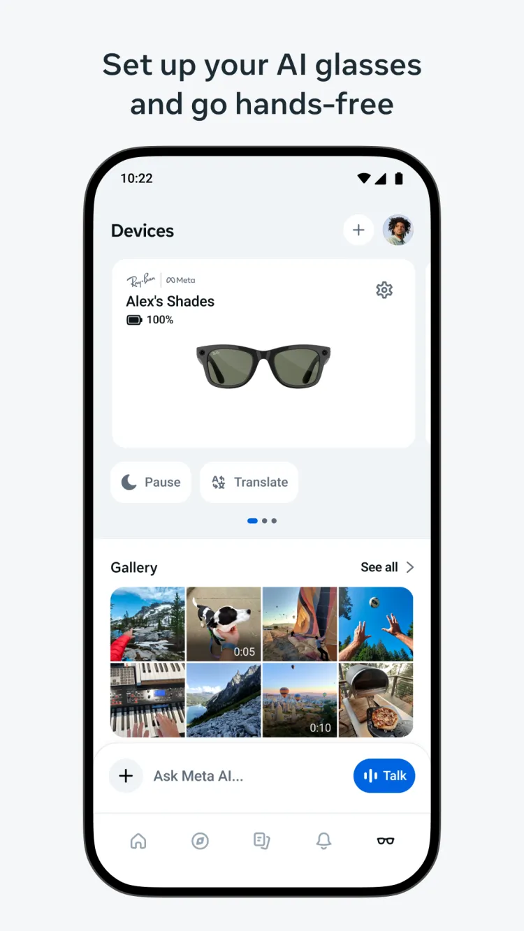- помогает подключать Meta Ray-Ban и взаимодействовать с умными очками