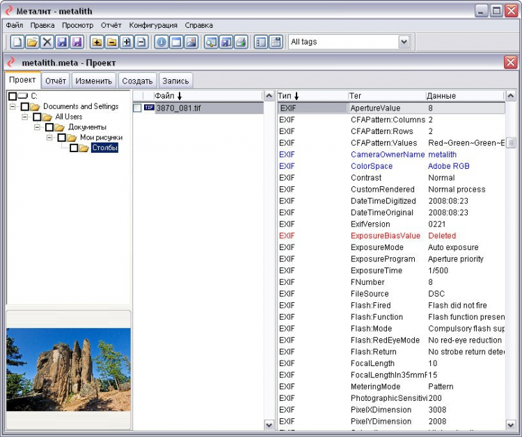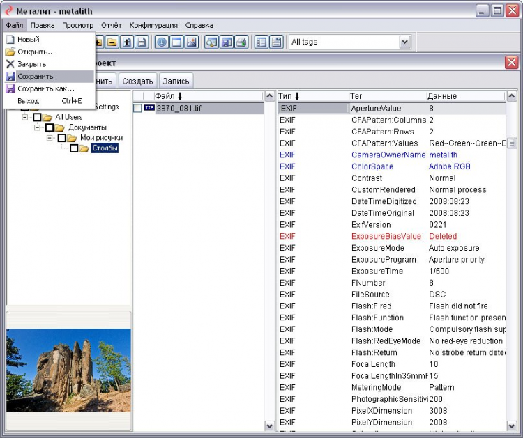 - Поддерживает все основные стандарты метаданных: TIFF, Exif, IPTC, XMP и др. мПоддерживает файлы форматов TIFF и JPEG.