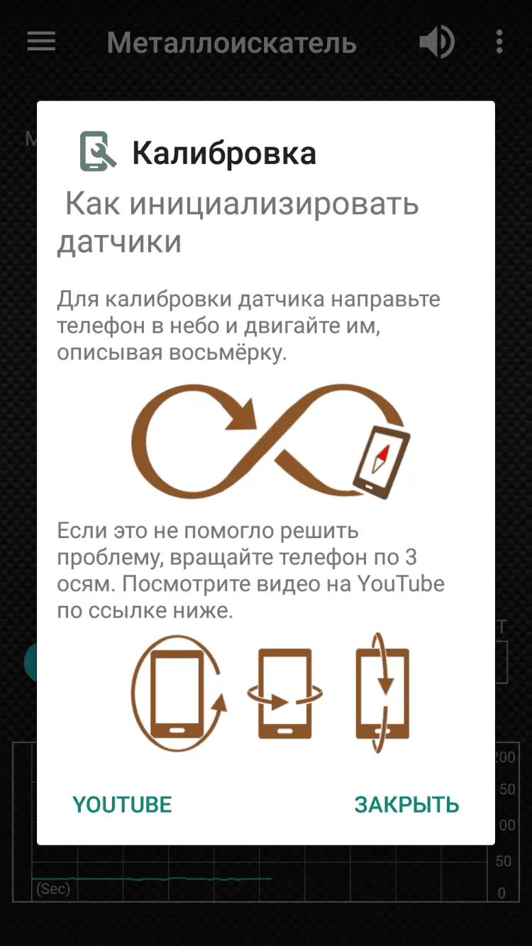 Обратите внимание, что точность показаний зависит от типа вашего мобильного устройства и состояния магнитного датчика. При этом, также датчик реагирует на любые электронные приборы, излучающие электромагнитные волны. При необходимости, вы сможете откалибровать датчики на своем устройстве, следуя инструкциям внутри приложения.