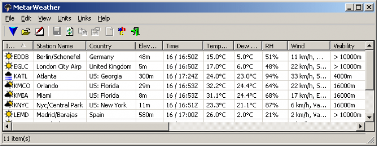 MetarWeather - это утилита, которая собирает METAR-отчеты со всего мира и отображает информацию о погоде в простой таблице.