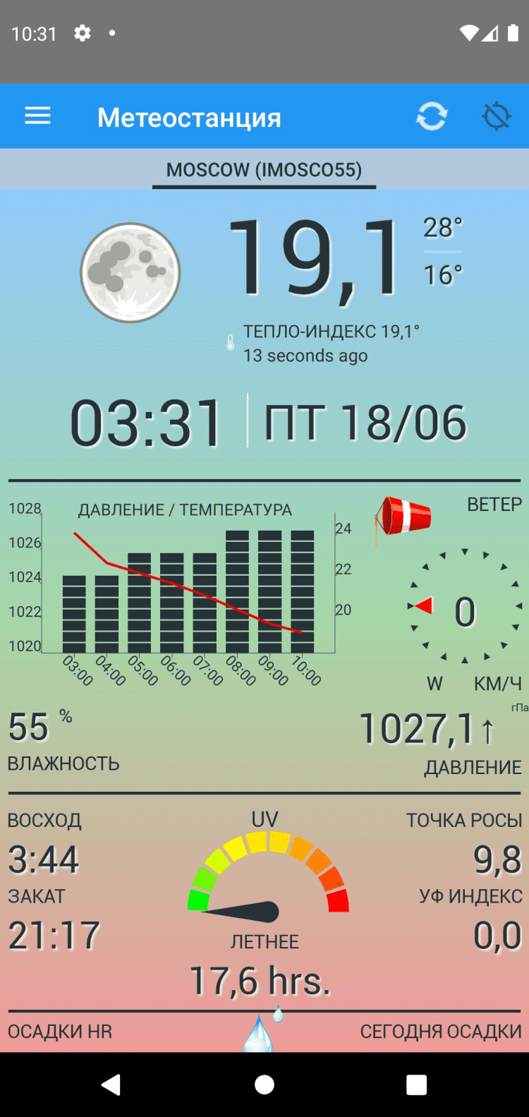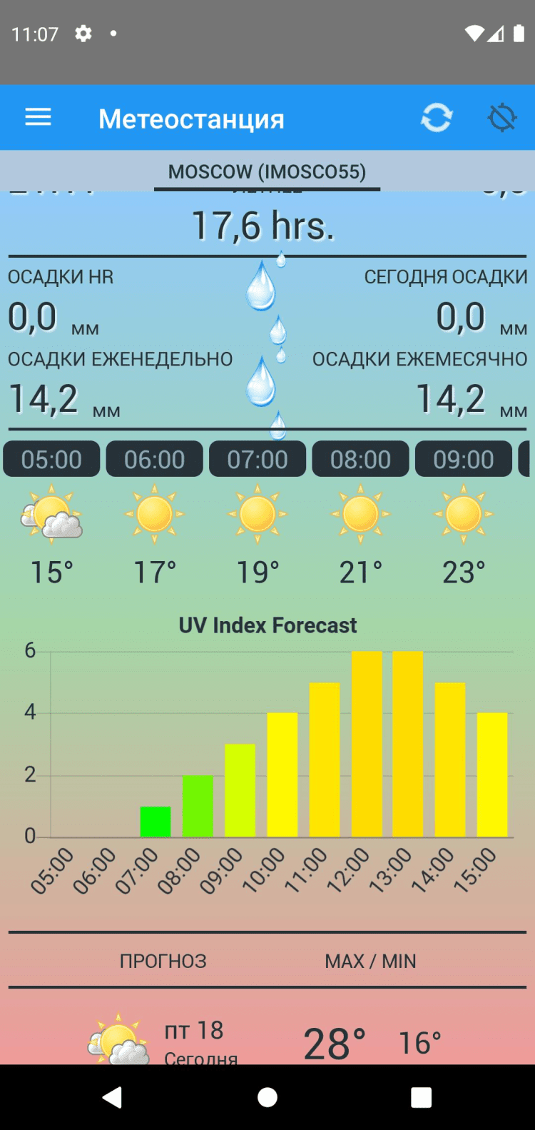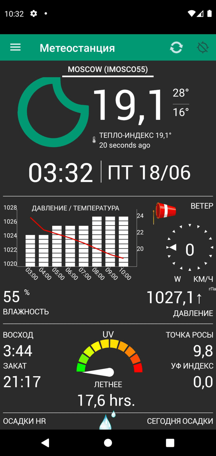 Метеорологическая станция — скачайте это приложение на свой мобильный телефон, чтобы в любой момент иметь доступ к точной информации о погодных условиях в вашем регионе. Последняя версия приложения поддерживает работу с несколькими источниками информации и совместима как с мобильными телефонами, так и планшетами с большой диагональю экрана.