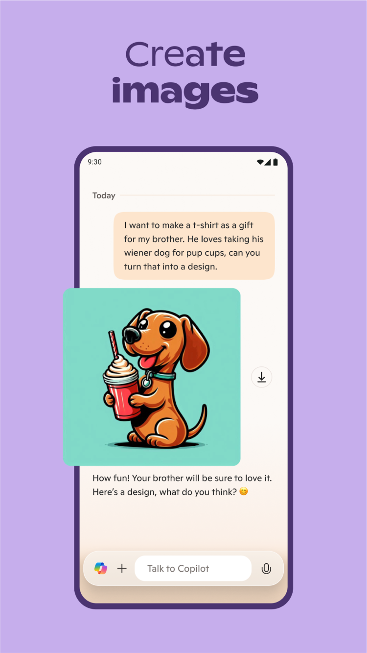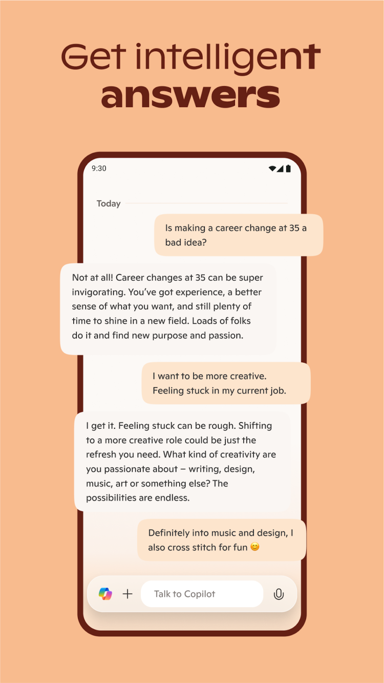 Последняя версия приложения предоставляет практически безграничные возможности для всех: от студентов до работающих специалистов. Наиболее очевидным из них является мгновенный доступ к любой информации. Просто спросите Copilot о чем угодно, и он найдет точный и релевантный ответ, используя преимущества моделей ИИ DALL·E 3 и GPT-4o. Помимо поиска информации, приложение можно использовать для анализа данных, обобщения документов и многого другого. Все, что вам нужно, начинается с простого чата с Copilot на вашем смартфоне.