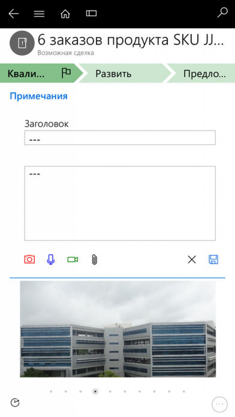 Кроме того, Microsoft Dynamics 365 для BlackBerry позволяет создавать заметки, задачи и вложения, связанные с соответствующими записями продаж и сервиса. Для более удобного создания заметок, вы сможете использовать камеру, либо другие возможности своего гаджета.