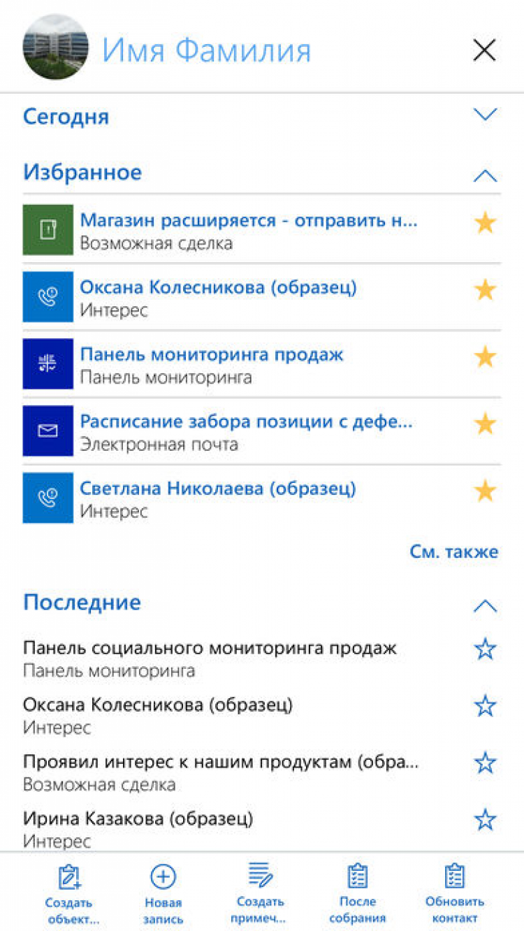 Эта программа предложит вам удобный интерфейс на базе компактных макетов и сгруппированных элементов. Это поможет получить всю необходимую информацию ещё быстрее. Кроме того, её рабочая область представляет из себя персонализированный центр действий, с помощью которого можно мгновенно выполнять типовые операции, получать рекомендации и открывать записи. А получить доступ к действиям, организациям, контактам и интересам можно прямо с домашней страницы.
