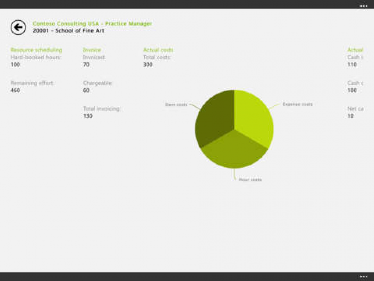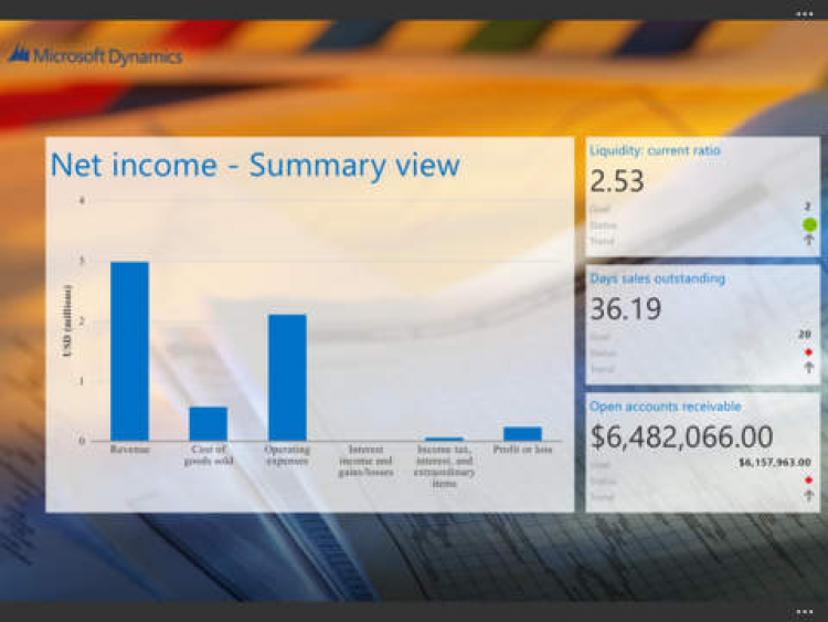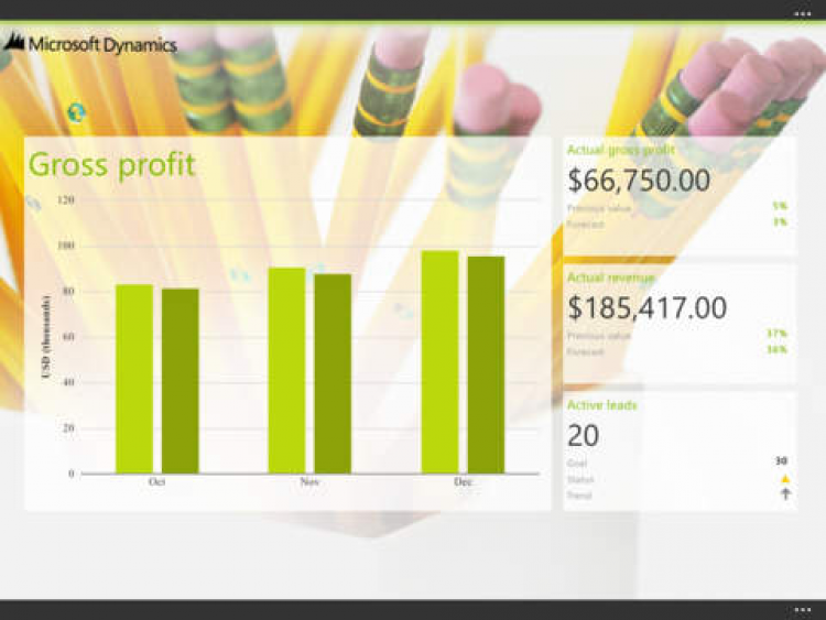 Это приложение поможет вам найти новые, свежие идеи для своего бизнеса в любой момент, читая советы других пользователей. Находясь в офисе или дома, вы всегда сможете просматривать финансовые отчеты, таблица и диаграммы, которые помогут вам принять верное решение. Вы можете работать как с данными из этого приложения, так и с данными из Microsoft Dynamics AX, Microsoft Dynamics GP или Microsoft Dynamics SL integration.