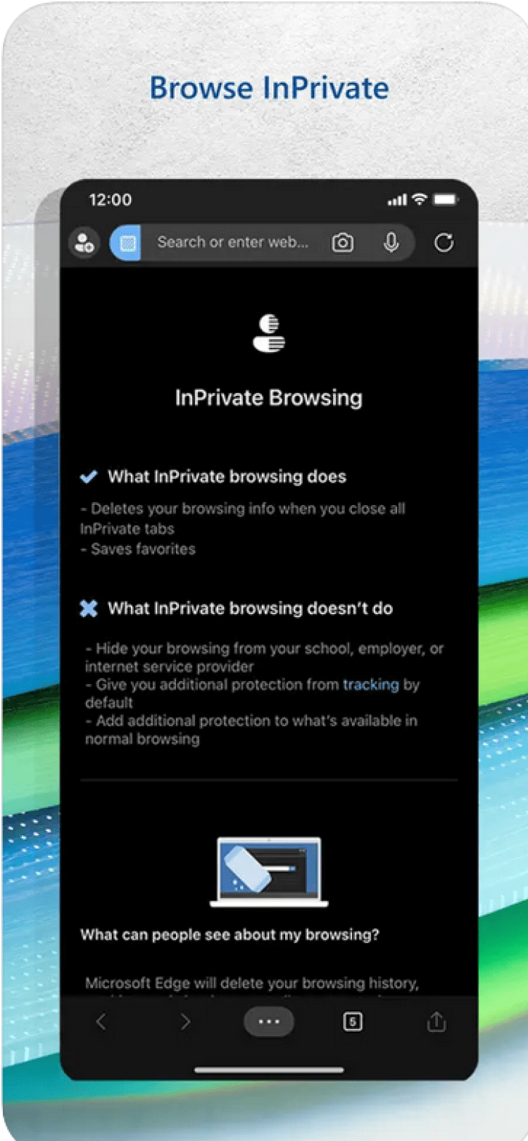 Браузер Microsoft Edge также позволит вам использовать режим приватного просмотра, в котором история просмотренных страниц, временные файлы из интернета, а также куки не будут сохранены.