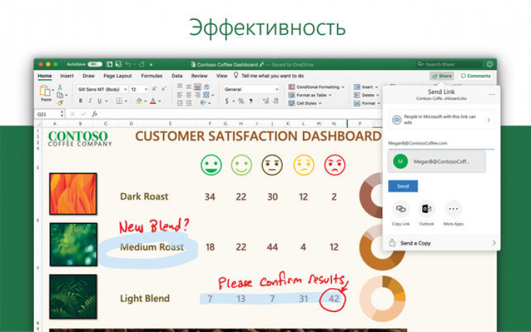 Перед вами версия популярной программы Excel от Microsoft, предназначенная для работы на macOS. Она поддерживает полный набор всех необходимых функций для комфортной работы с таблицами, в том числе и вложенными в электронные сообщения. Помимо этого, программа Эксель для Mac может быть использована для совместной работы с коллегами в сфере финансов, аудита и бухгалтерского учета.