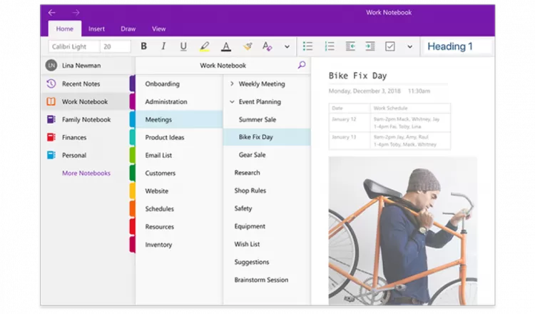 Используют Microsoft OneNote для Windows. Приложение имеет лицензию на свободное программное обеспечение, поэтому можно загрузить Microsoft OneNote бесплатно.