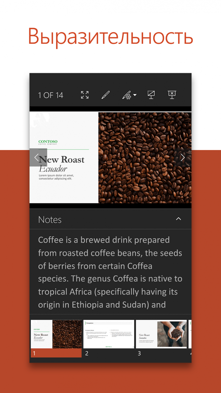 Приложение Microsoft PowerPoint идеально подойдет для работы с презентациями на Android-устройствах. Оно сочетает в себе знакомый внешний вид, интерфейс и качество продуктов Office для Windows с ещё более удобным сенсорным управлением.