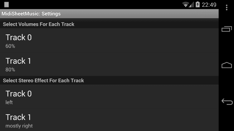 Midi Sheet Music (patched) Дополненная версия приложения Midi Sheet Music от разработчика Madhav Vaidyanathan. В этой версии программы добавлен метроном, возможность изменения громкости с шагом в 10%, а так же смещение влево и вправо на 5 шагов.