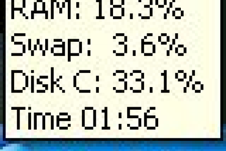 При ПЕРВОМ запуске записывает себя в автозагрузку, а ПОВТОРНОМ это удаляет и завершает работу. Управление прежнее: левой кнопкой - что показывать (CPU, RAM, Swap или Disk), двойное нажатие - выход из программы до следующей загрузки Windows плюс: правой кнопкой = выбор цвета. Пока больше ничего делать не умеет.