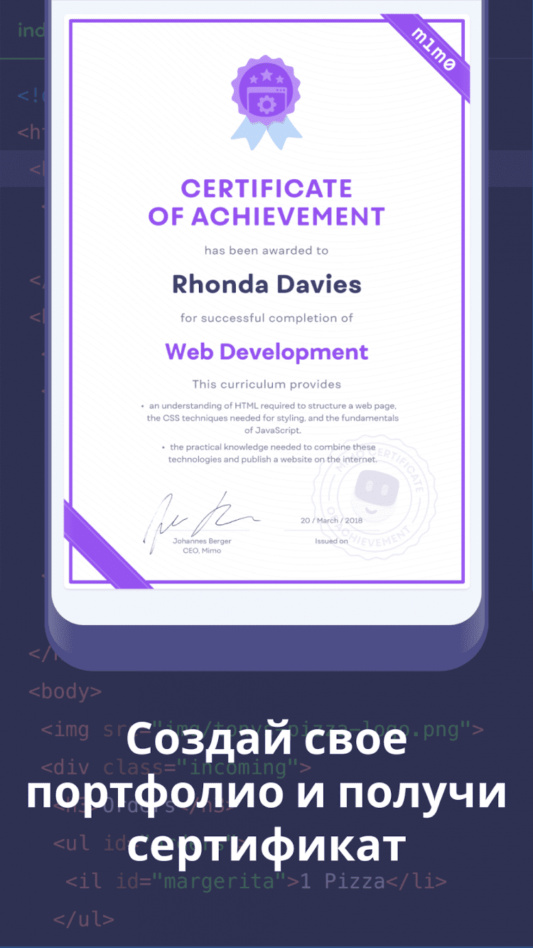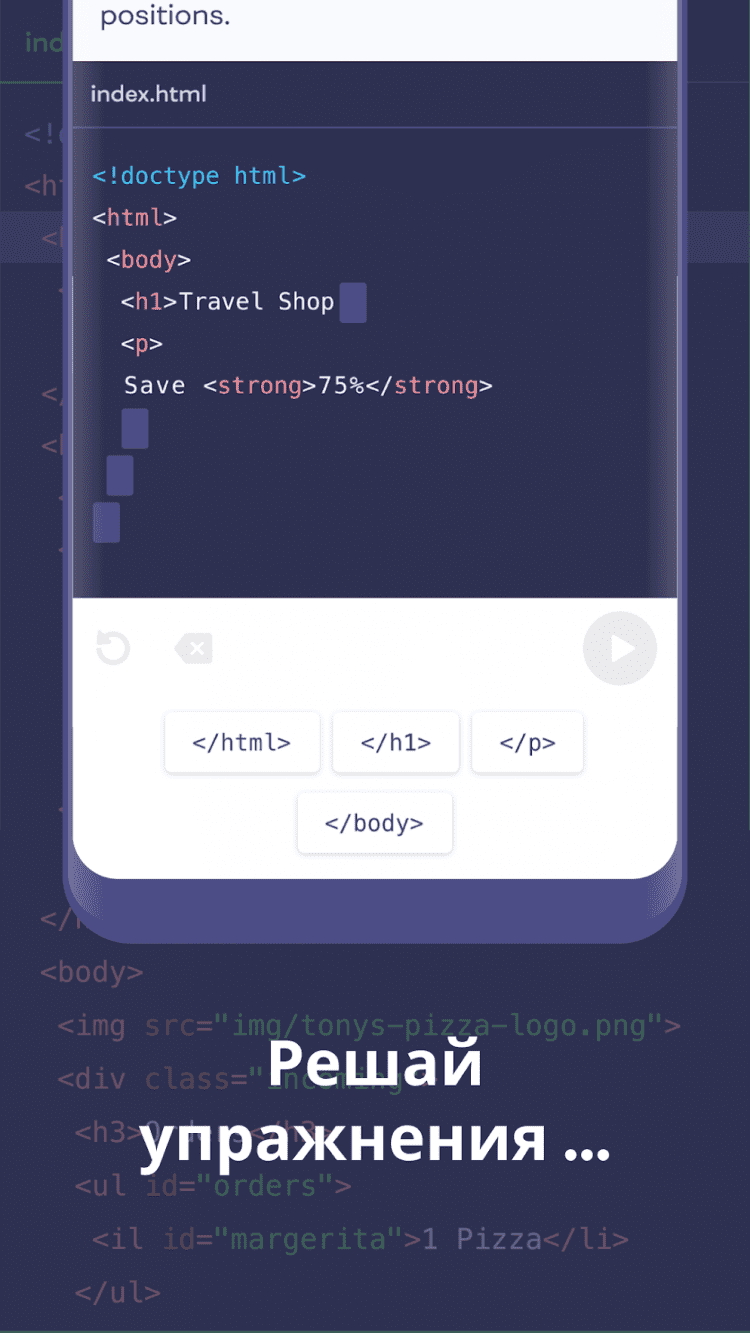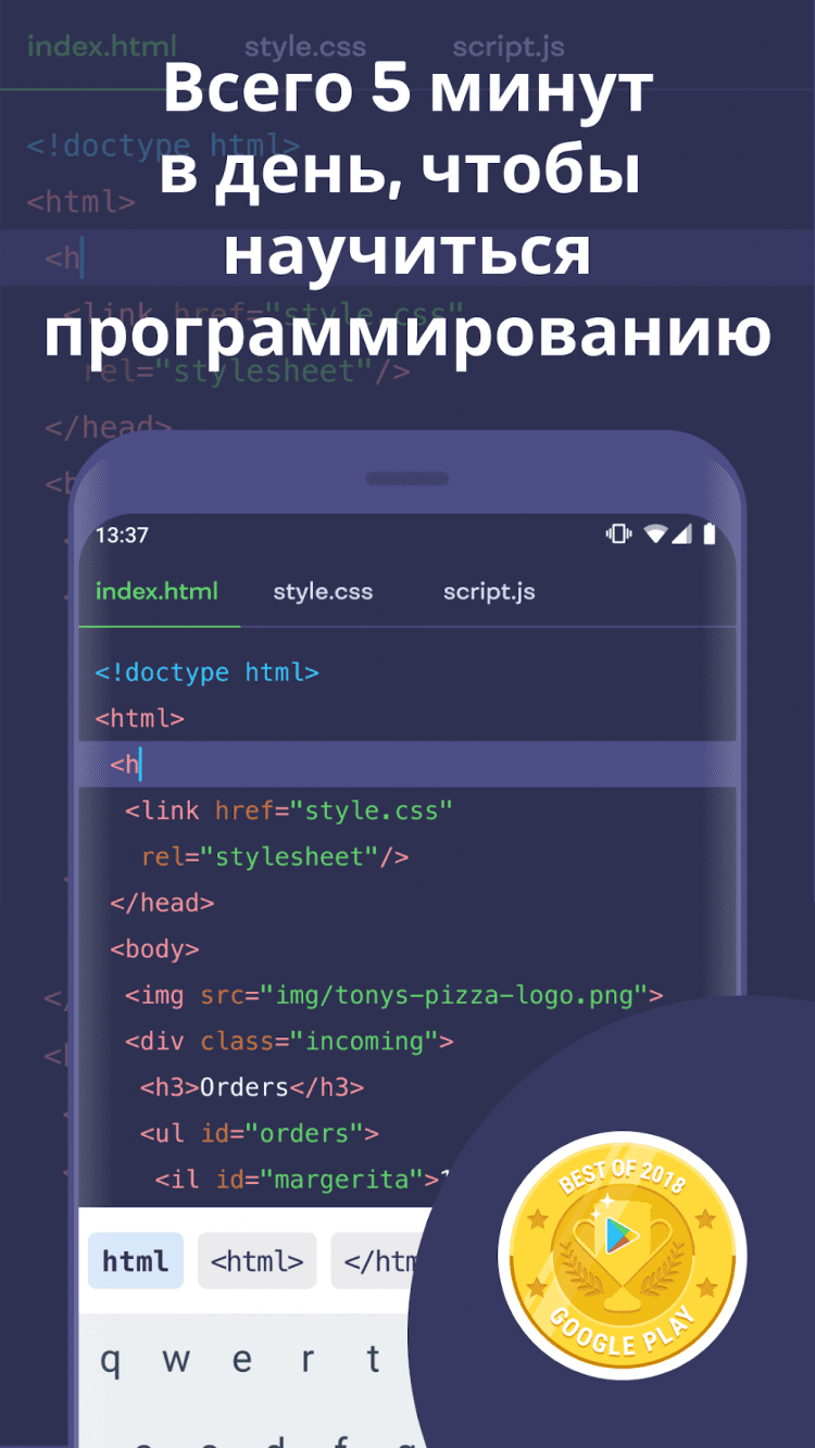Мимо — приложение, которое поможет вам научиться писать код, создавать игры, сайты и приложения, при помощи своего мобильного телефона. Благодаря последней версии программы, вы можете освоить HTML, CSS, JavaScript, SQL, Python, Kotlin, Swift и прочие языки с нуля, занимаясь всего по 5 минут в день. Здесь вы найдёте множество курсов, предназначенных как для опытных программистов, так и для новичков. Все они содержат интересные и эффективные упражнения, задания и проекты, которые помогут ежедневно узнавать что-то новое и закреплять материал.