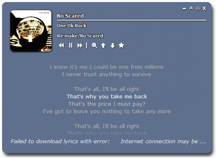Кроме текста песни в окне программы также есть кнопки управления воспроизведением, регулятор громкости и полоса прокрутки, чтобы не нужно было постоянно переключаться в окно плеера. Из него вы сможете переключать песни, останавливать и возобновлять музыку.