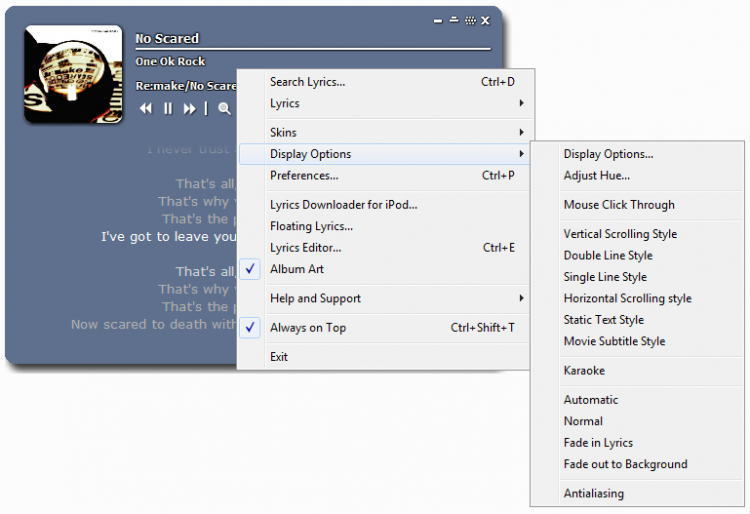Эта программа автоматически ищет и загружает текст песни, которая играет в текущие момент, отображая его в небольшом окне с автоматической прокруткой. В настройках программы можно выбрать внешний вид окна, изменить уровень его прозрачность, а также настроить различные параметры текста.