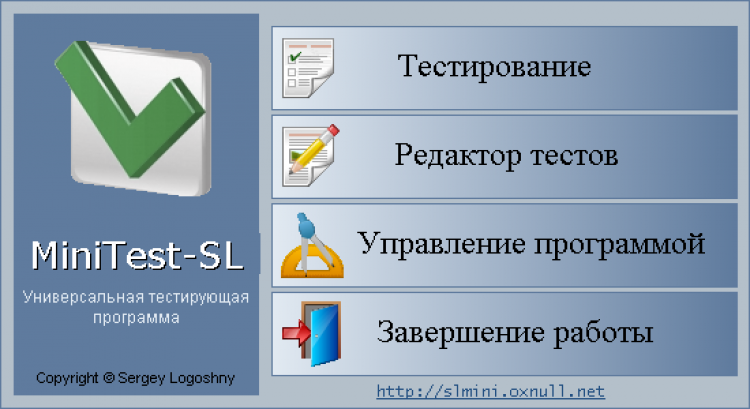 MiniTest-SL - это программа проверки знаний предназначена для компьютерного тестирования знаний по различным предметам в процессе обучения. Тестирующая программа является универсальной и может работать как в режиме проведения компьютерного тестирования учащихся, так и как программа для создания тестов. При контроле знаний используются различные формы ввода ответа на вопрос:
