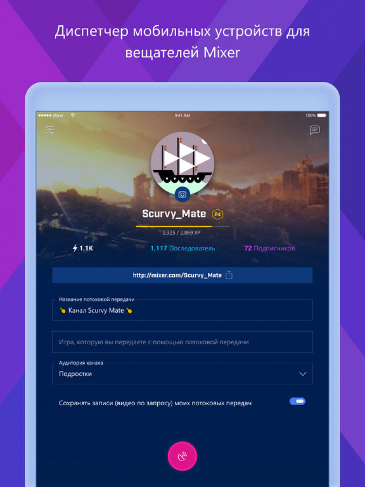 Скачайте приложение Mixer Create для iOS и проводите собственные видео трансляции или просматривайте чужие, прямо со своего гаджета от Apple.