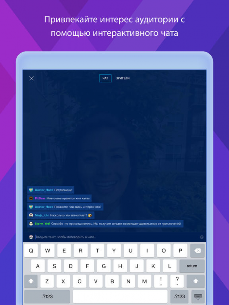 Во время трансляции, вы сможете общаться с аудиторией канала. Кроме того, вы можете использовать это приложение для управления чатом, во время проведения трансляции с другого устройства.