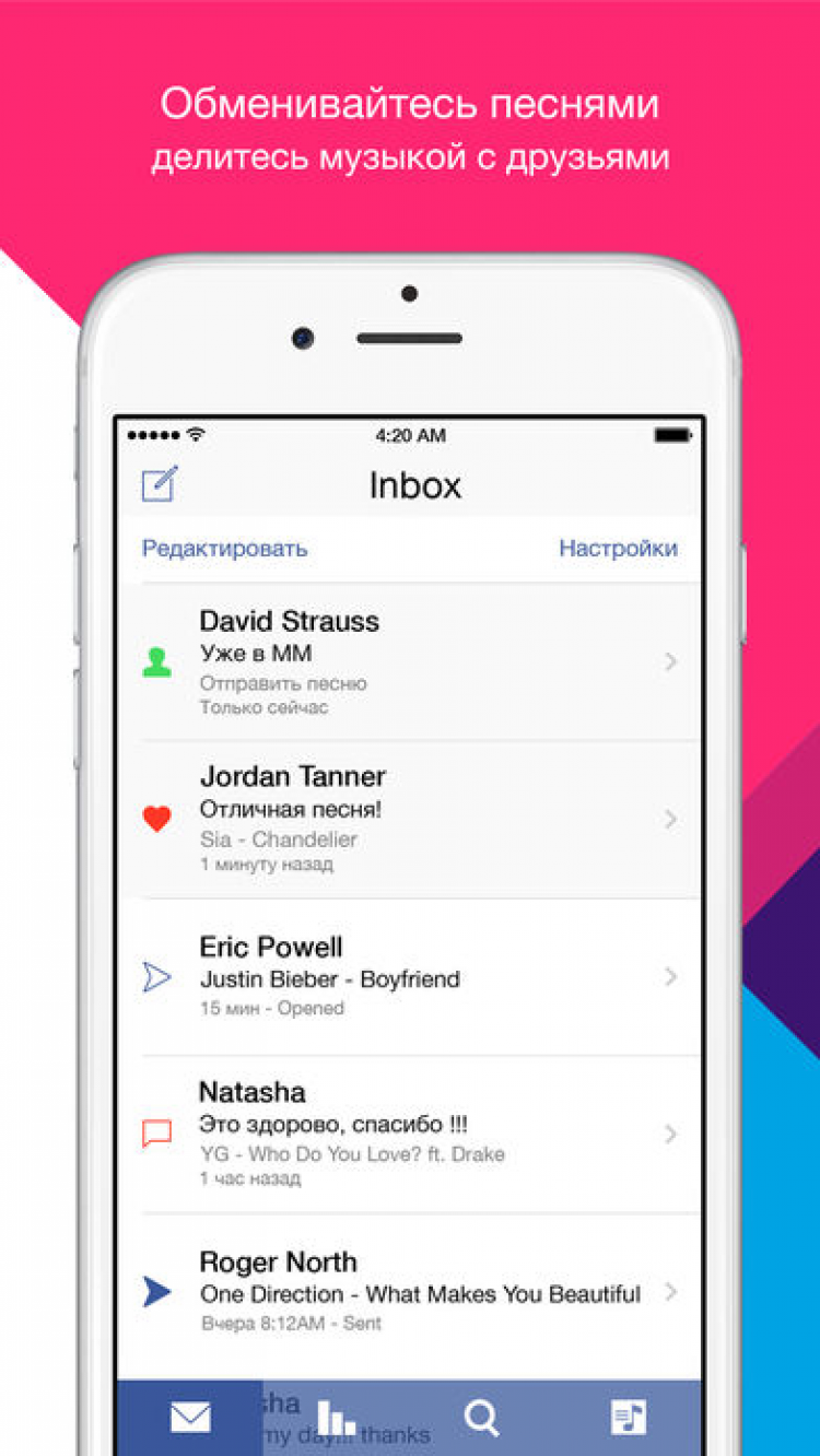 Скачайте приложение MM (Music Messenger) на свой iPhone или iPad и слушайте лучшую музыку со всего мира абсолютно бесплатно и делитесь своими музыкальными вкусами с друзьями.
