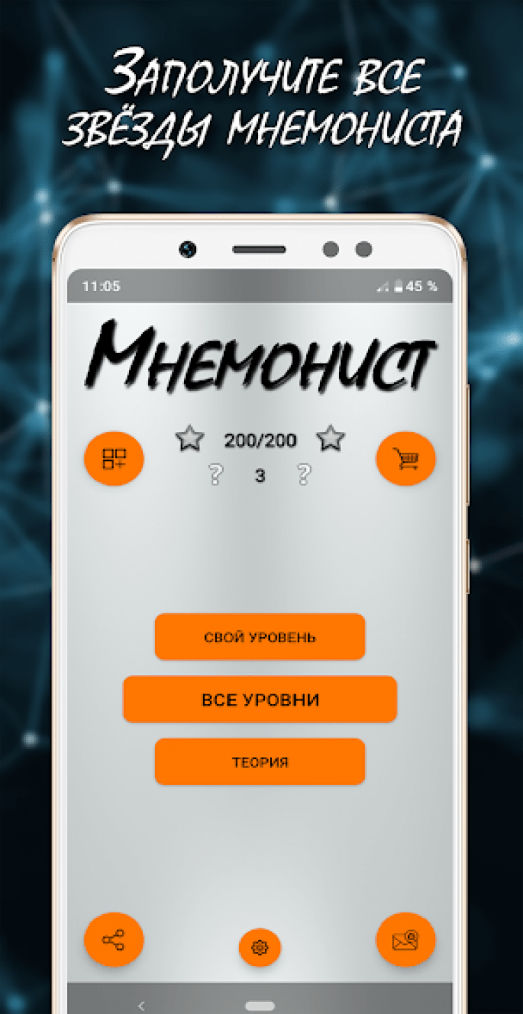 Мнемонист — это полезное приложение для тех, кто хочет улучшить свою память. Здесь вас ожидает множество уровней на запоминание и вспоминание слов, которые помогут улучшить работу вашего мозга в приятной игровой форме.