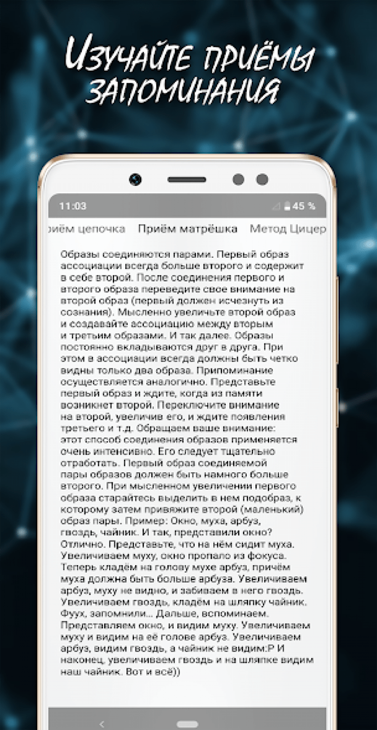 - изучение полезных приёмов запоминания;