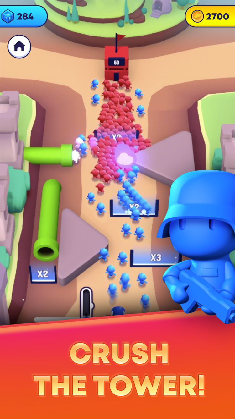 Если вы когда-либо играли в оригинальную версию этой игры, ее модифицированная версия вряд ли вас удивит. Она предлагает тот же игровой процесс и те же функции, бойцов, пушки и чемпионов. Подготовьте свою пушку и создайте как можно больше солдат, чтобы уничтожить всех врагов в динамичных PvP-сражениях. Ищите все возможные короткие пути к базе вашего врага, так как вам может понадобиться защитить себя от внезапных атак. Но что самое главное и чем отличается игра от других, используйте ворота с множителями, чтобы превзойти своих врагов численностью.