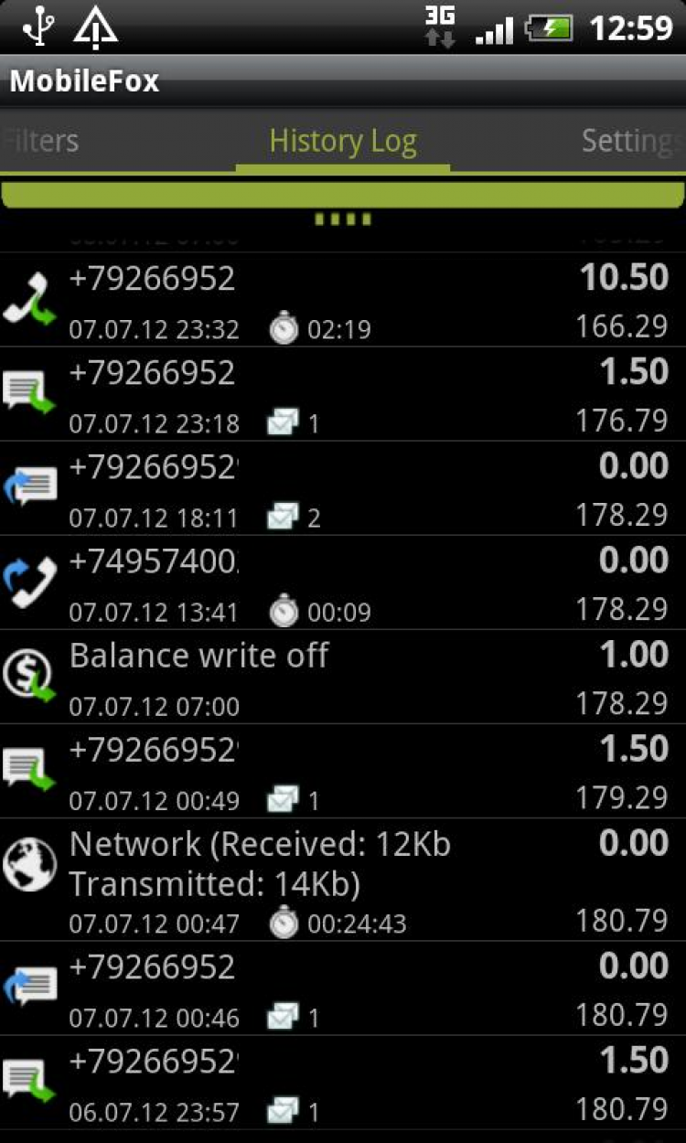 MobileFox — это менеджер звонков/SMS/MMS/Internet соединений, запрашивающий баланс по USSD. Программа определяет стоимость для каждого соединения, путем запроса текущего баланса у оператора. Баланс определяется с помощью USSD запроса (например *100#). Цель программы не просто отобразить текущий баланс, а построить статистику активности пользователя для оптимизации расходов на сотовую связь.