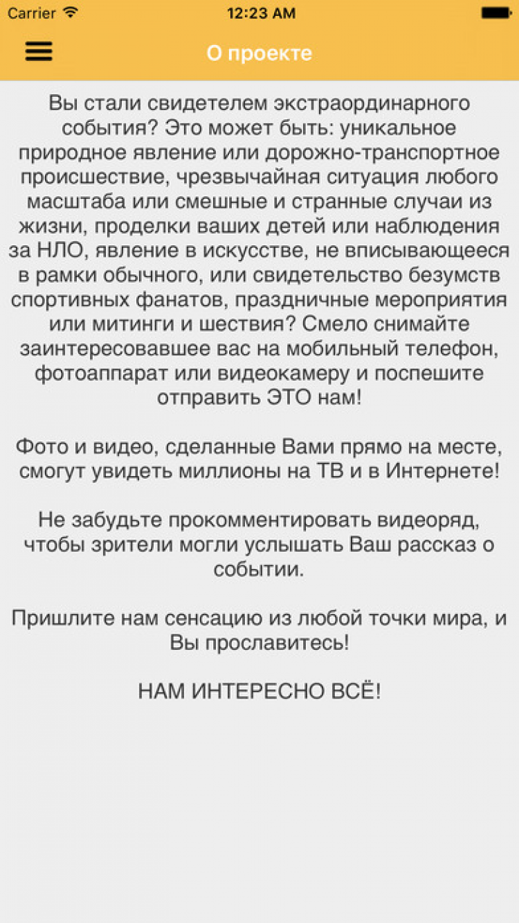 Мобильный Репортер Стали очевидцем необычного происшествия? У вас с собой яблочный аппарат?