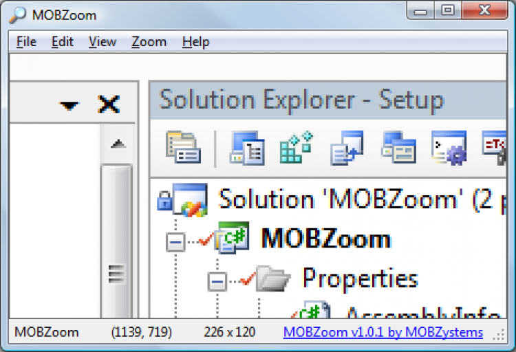 MOBZoom Эта программа показывает в своем окне увеличенную область экрана вокруг курсора мыши.