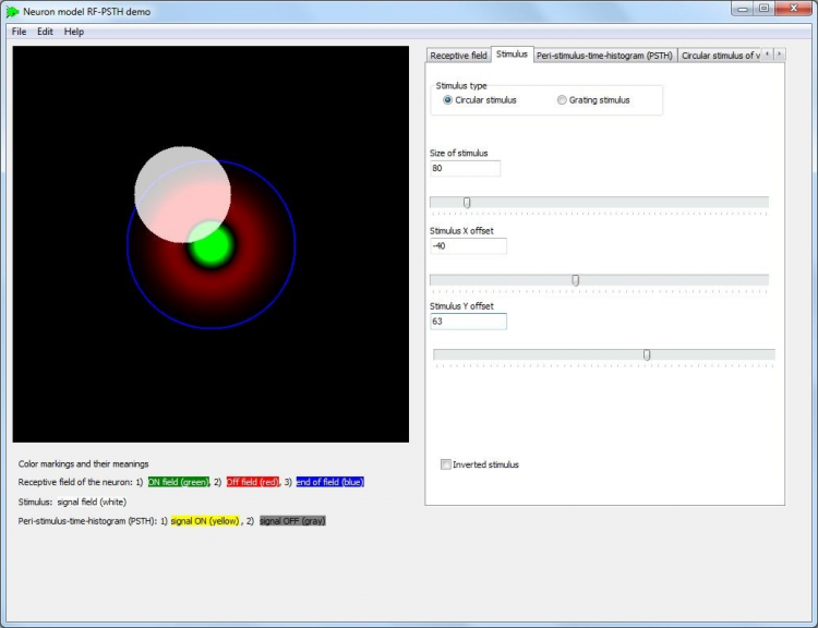 Модель нейрона RF-PSTH - это нейромодель RF-PSTH Модель нейрона RF-PSTH способна моделировать как антагонистические рецептивные поля нейронов, так и выходной сигнал PSTH. Существующие на сегодняшний день искусственные модели нейронов не способны моделировать фундаментально важные свойства биологических нейронов: