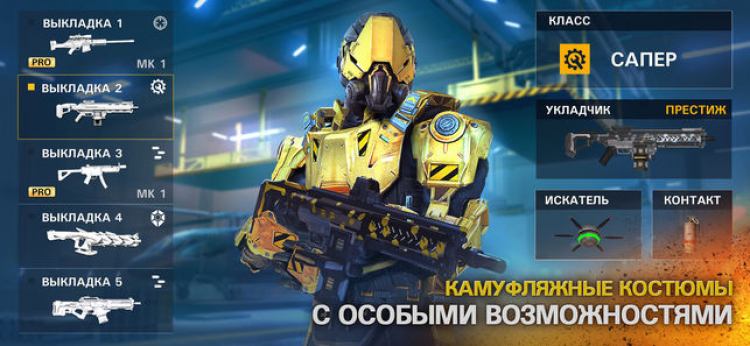 - Наличие камуфляжных костюмов со специальными возможностями.
