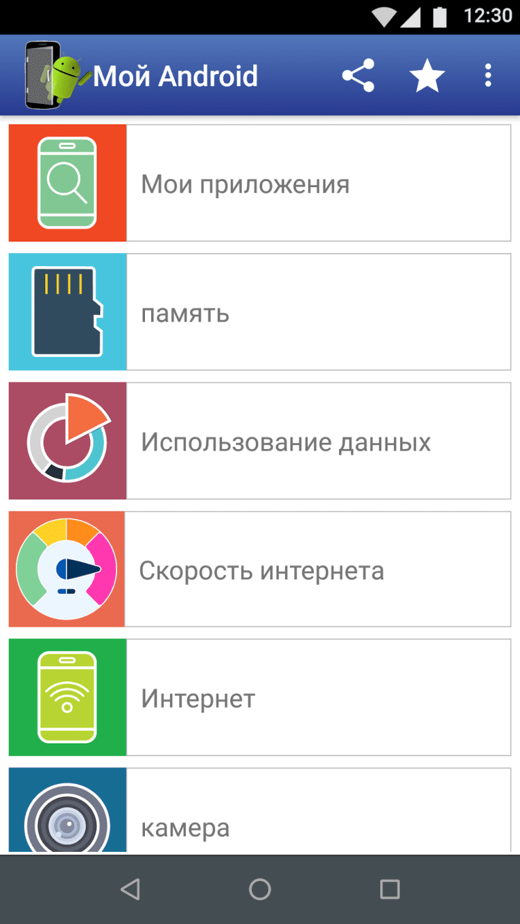 Мой Android - это программа для просмотра системной информации и журнала звонков на Android-устройствах. Вы сможете просматривать список установленных приложений, удалять или запускать их, просматривать оставшееся место на внутренней памяти или SD-карте, просматривать историю звонков за сегодня, вчера или последнюю неделю, информацию о камере устройства, подключении к интернету, о размере, разрешении и характеристиках экрана, объеме оперативной памяти, версии Android, а так же о производителе и серийном номере устройства.