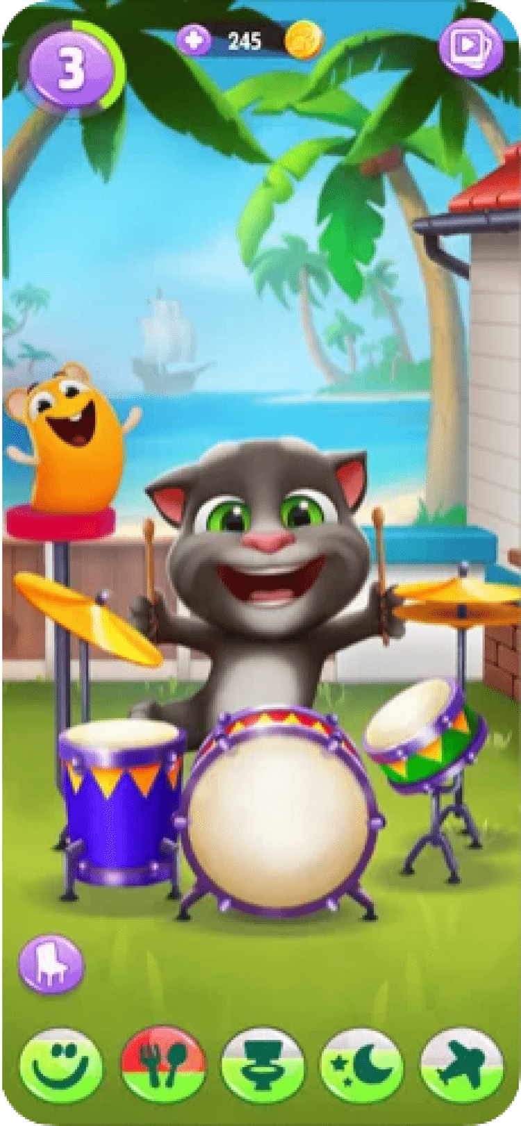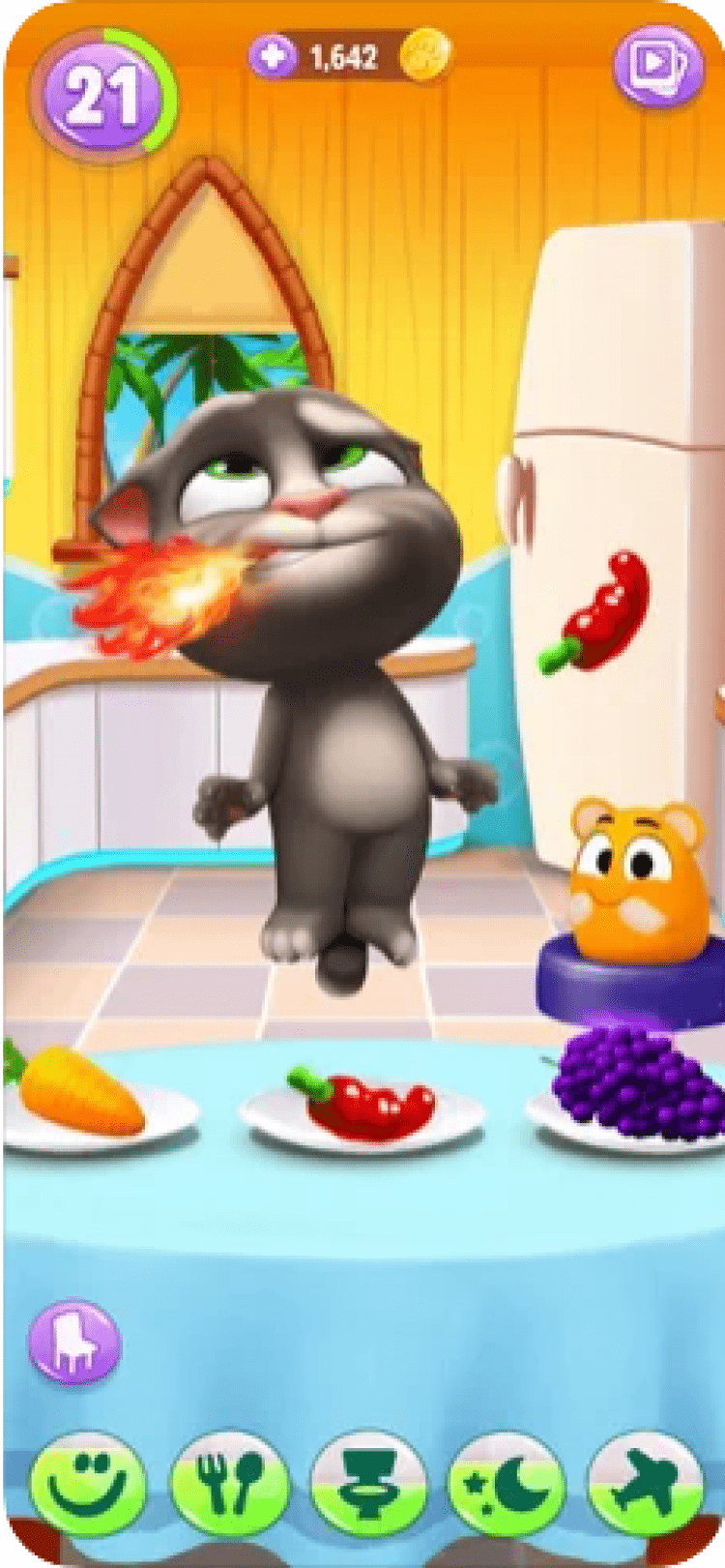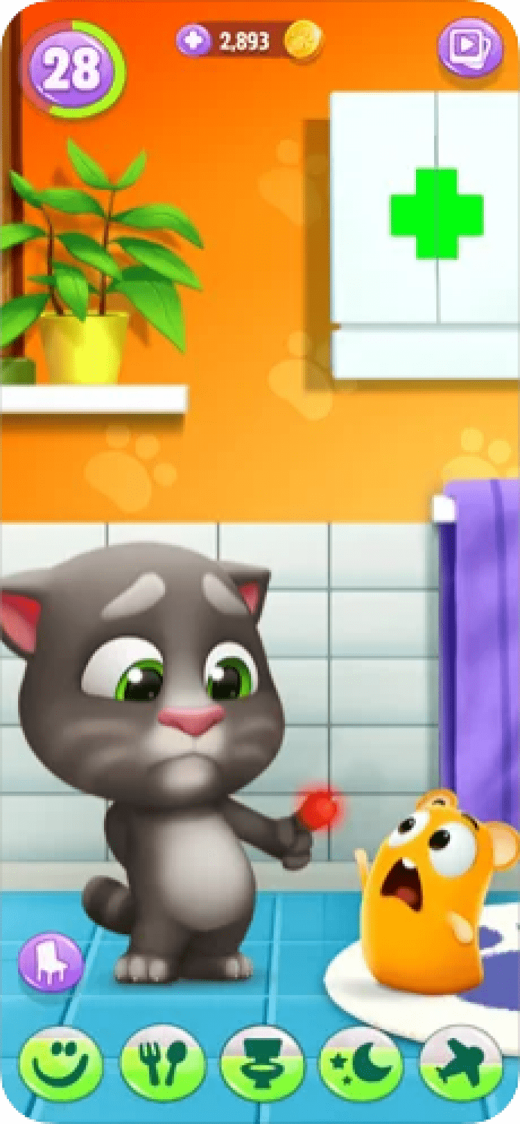 - Возможность гладить Тома, а он будет реагировать на каждое прикосновение.