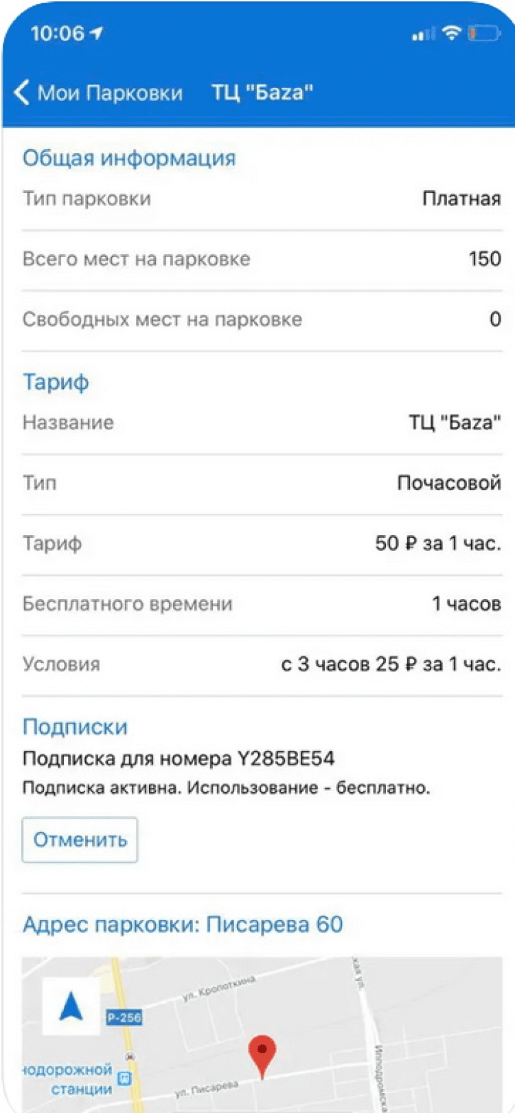 • автоматическая оплата парковки (потребуется привязать банковскую карту).