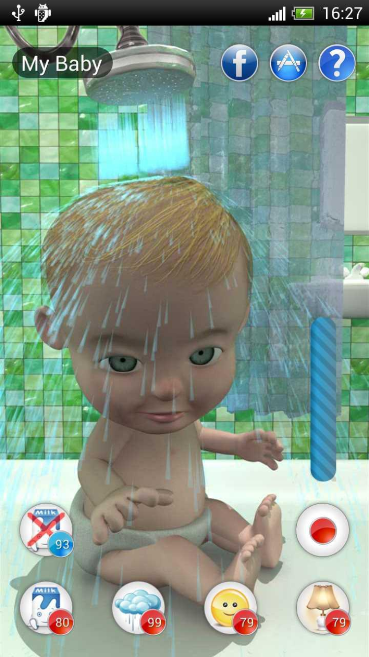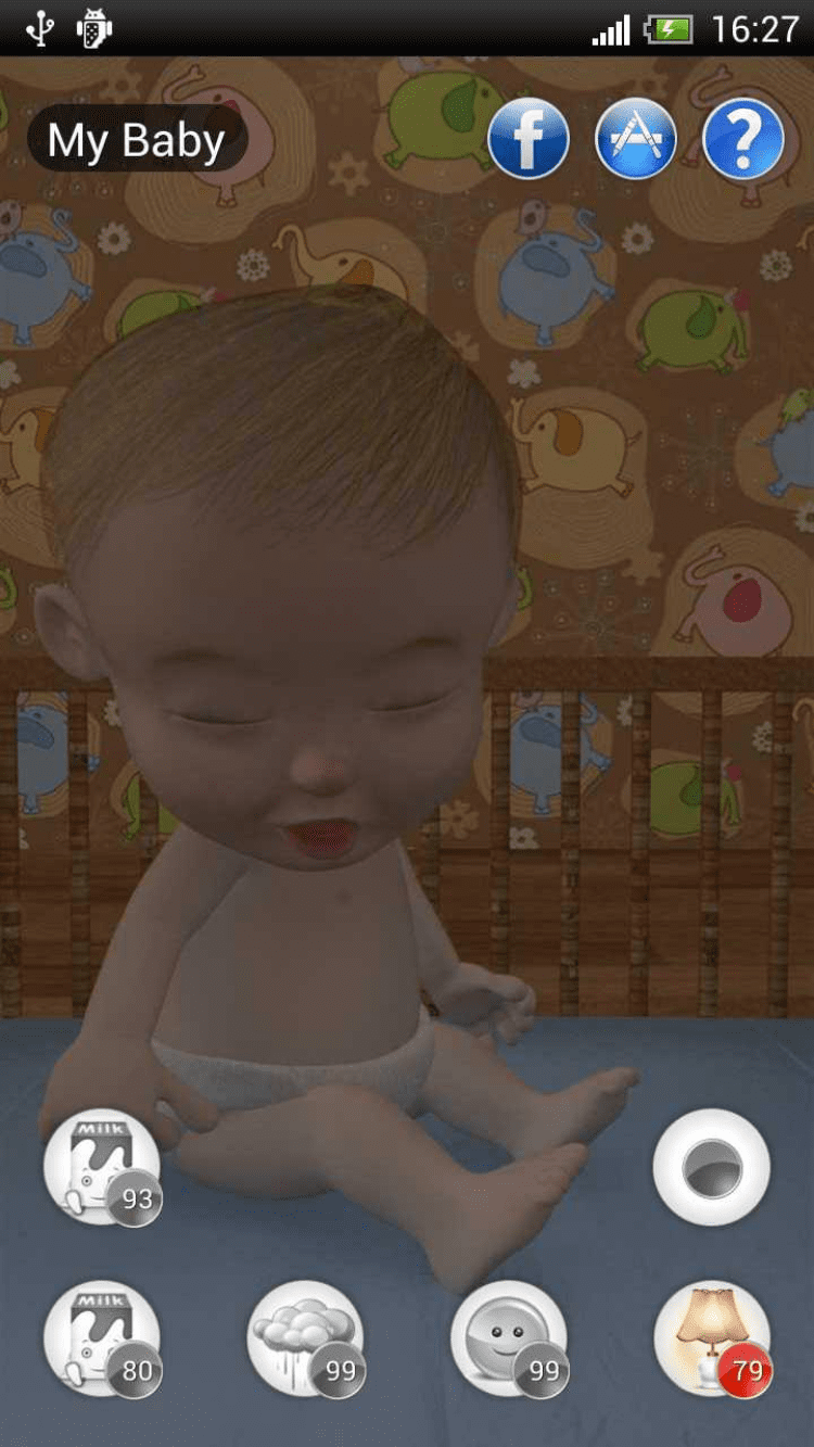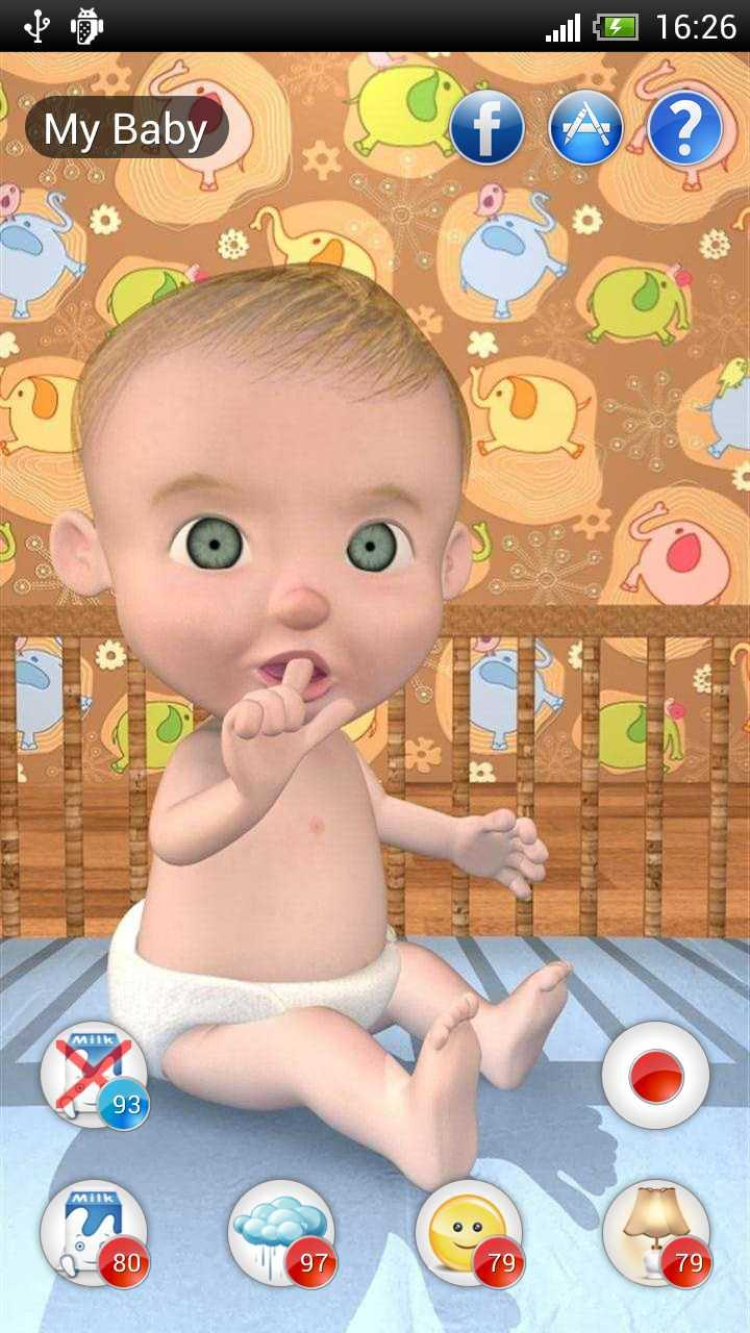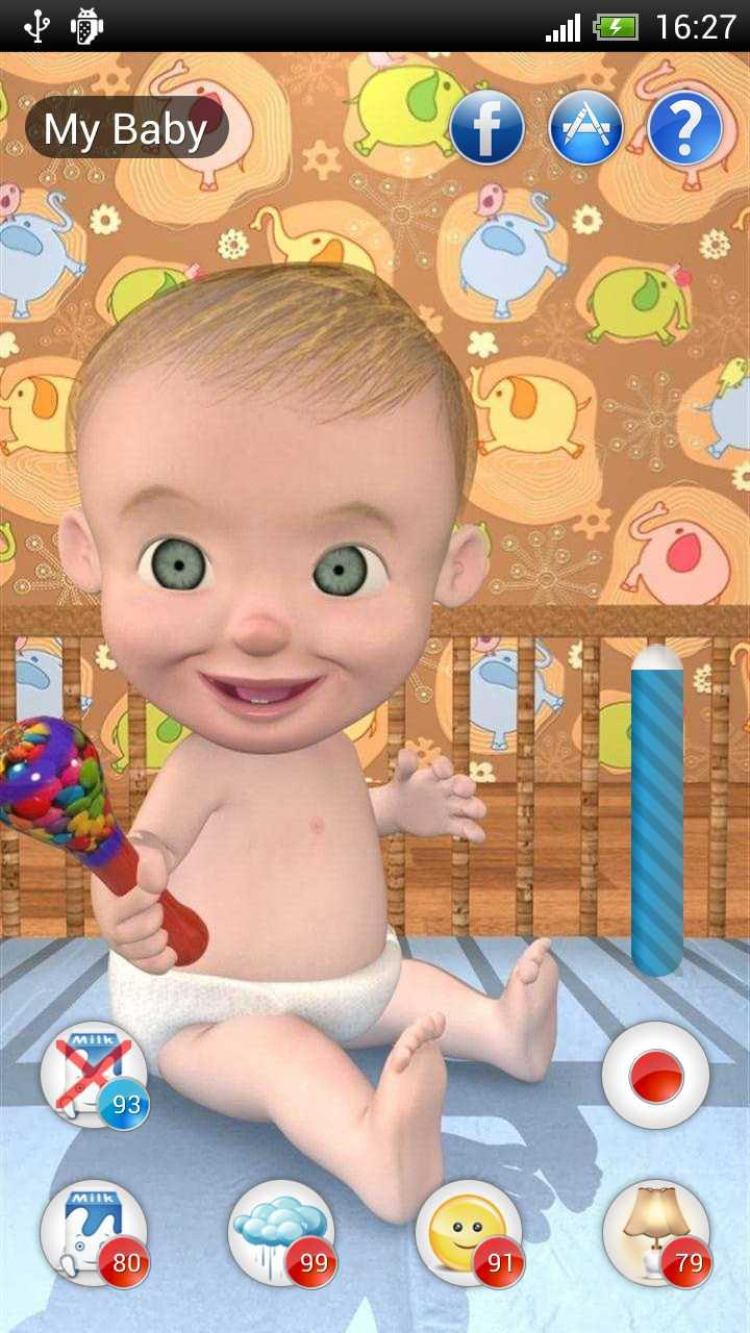 Мой ребенок (Тамагочи) — это прикольная вариация игры тамагочи, в которой вам предстоит заботиться о настоящем человеческом ребенке. Выберите ему имя и не забывайте о нем ухаживать. Нажмите на его лицо, чтобы он засмеялся. Не забывайте кормить его молоком, которое можно заработать, играя в мини игру. Чтобы кормить ребенка, удерживайте кнопку с молоком. Чтобы вымыть его, удерживайте кнопку с облаком. Если нажать на кнопку с улыбкой, ребенок будет играть с погремушкой. Вы можете уложить его спать, нажав на кнопку с лампой, а так же записать для него свой голос, нажав на запись.