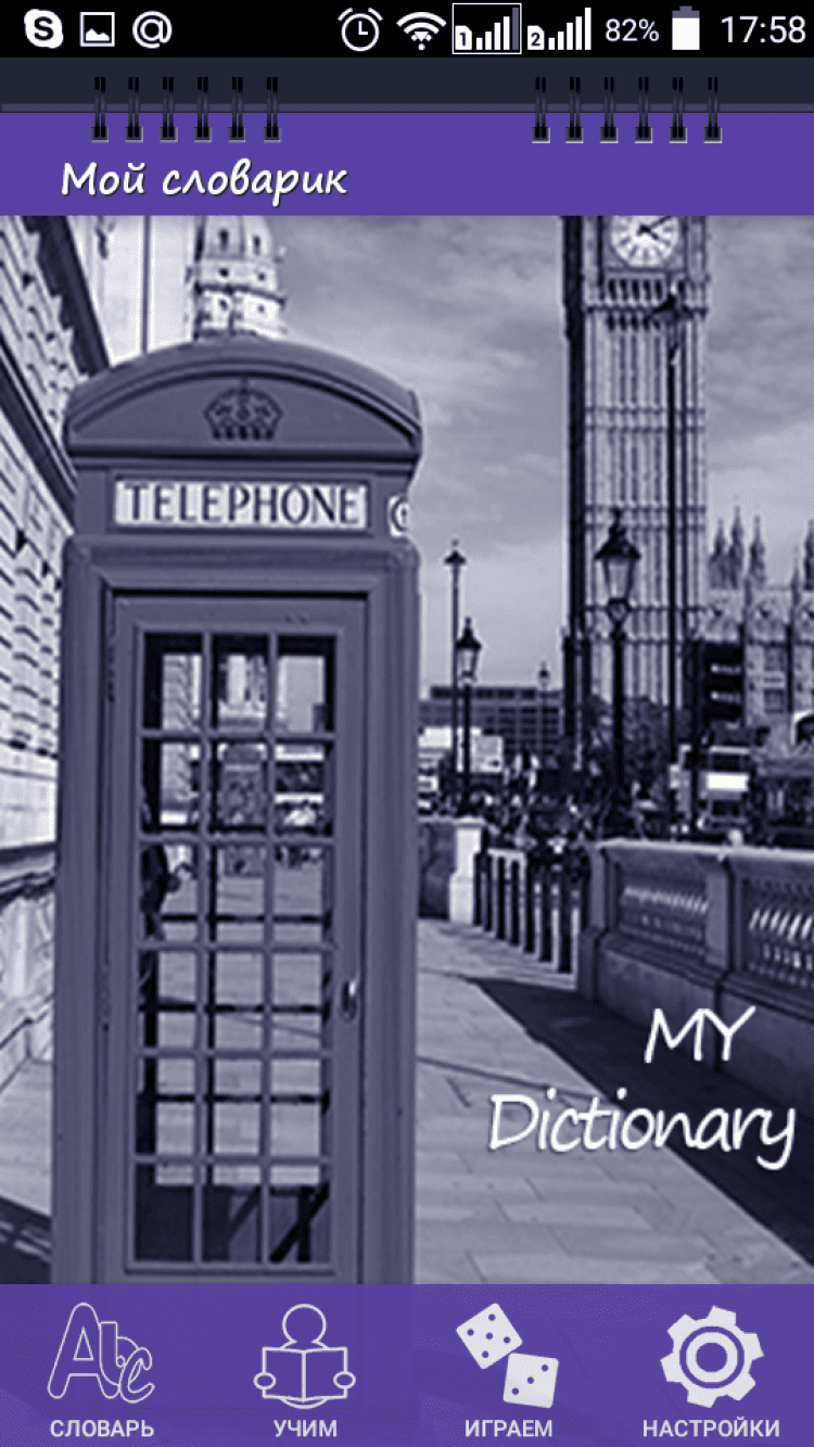 Сам словарь представляет из себя "записную книжку" для ведения изучаемых Вами английских слов. Наш изначальный словарь имеет довольно обширный набор слов, который мы стараемся дополнять по мере возможности новыми английскими словами. Вы же можете на практике встретить те слова, которых нет в нашем стандартном словаре. Именно для таких случаев у вас есть возможность вести лично введенные слова, что значительно расширит возможности именно вашего приложения.