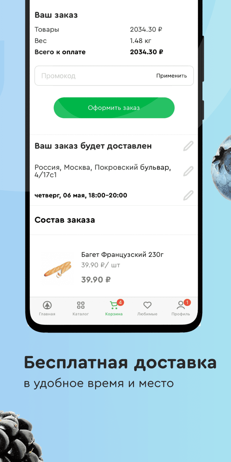 Помимо экономии денег, программа способна сэкономить ваше время. В этой программе, вы можете оформить доставку продуктов на дом или в офис, а если вы не имеете возможности ожидать курьера в предложенный интервал времени, вам наверняка придется по вкусу услуга "закажи и забери". Она позволяет заказать сбор вашего заказа в магазине, без доставки: вы можете приехать в супермаркет и забрать заказ лично, в указанное время.