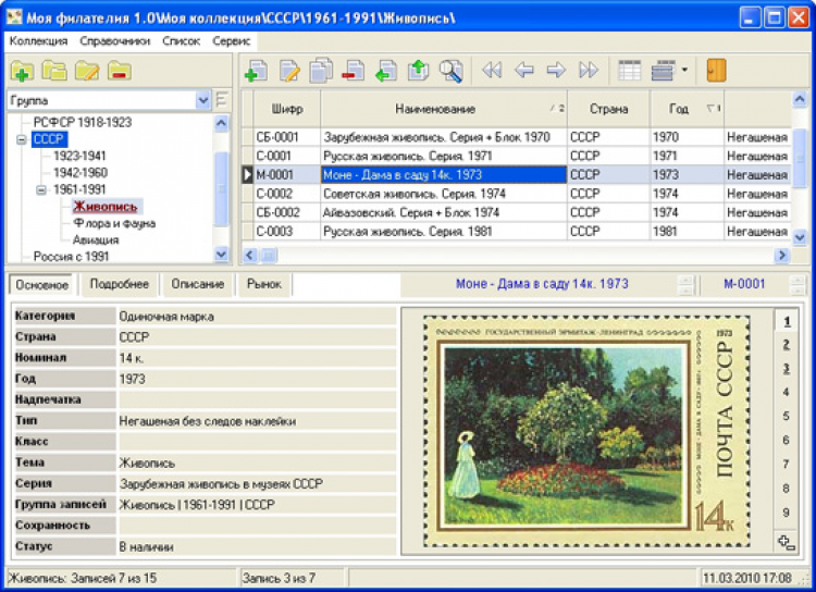 Моя филателия Приложение, разработанное, чтобы помочь коллекционеру-филателисту создать электронный каталог коллекции и удобно им пользоваться.