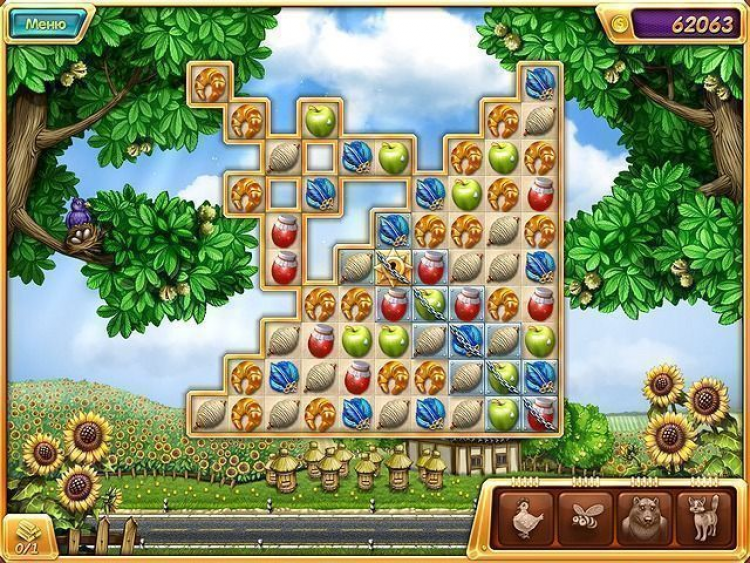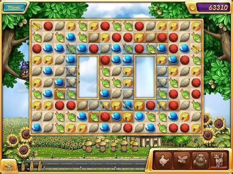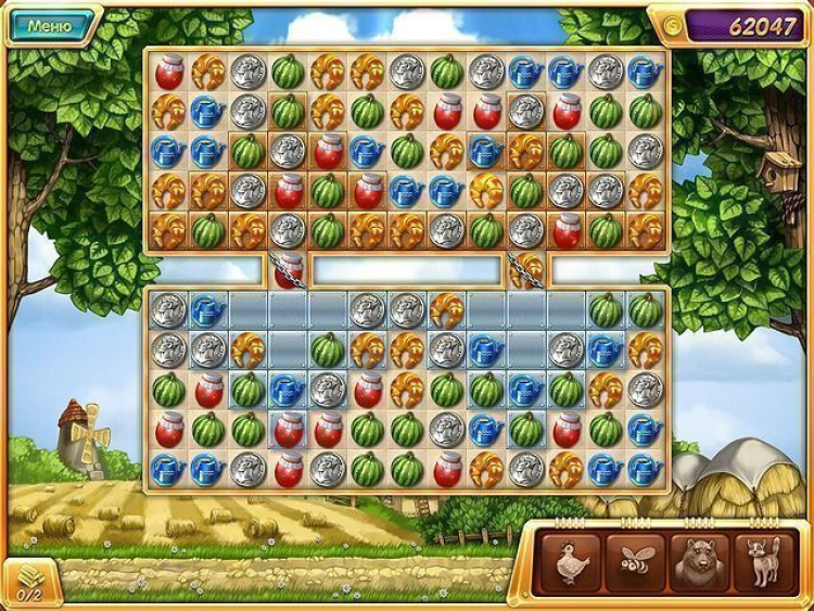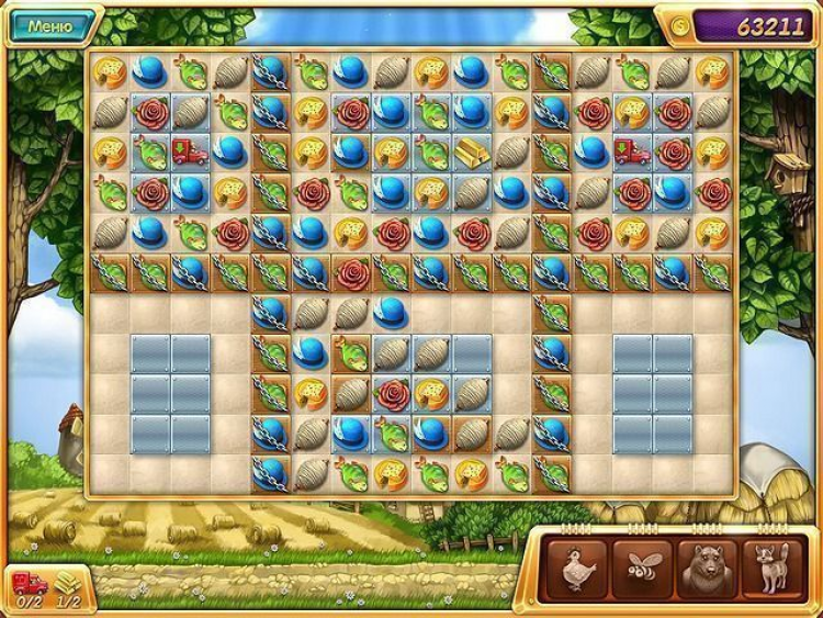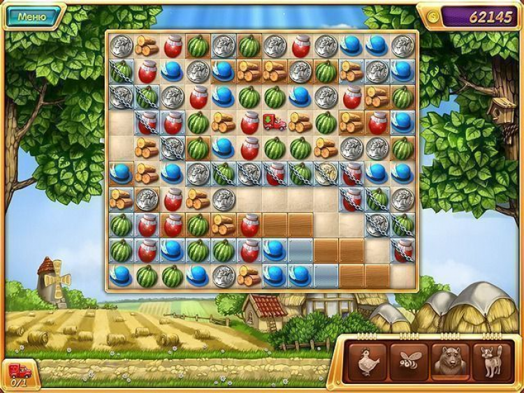 Четыре фишки в ряд активируют Бомбу она уничтожит все элементы вокруг себя в радиусе трех клеток. Бонус Курица поможет избавиться от ненужной фишки. А в случае замешательства всегда можно воспользоваться подсказкой: на экране высветится возможный вариант следующего хода. Заработанные очки тратьте на приобретение разнообразных улучшений. Возводите новые постройки: курятник, мельницу, пекарню. Выращивайте овощи и фрукты. Заведите веселых питомцев на вашей усадьбе места хватит всем!